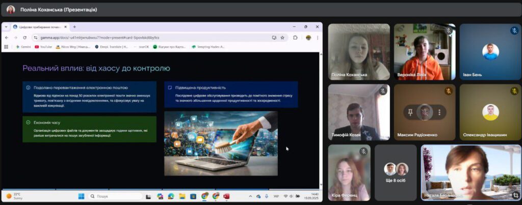 У Херсонському фізико-технічному ліцеї Херсонської міської ради було проведено захід на тему: «Цифрове прибирання», яку підготувала ліцеїстка 11Б класу, учасниця міського клубу NAVI при Херсонському міському управлінні освіти Коханська Поліна. Дівчина порушила злободенні питання користувачів інформаційних ресурсів: цифрове прибирання впливає на екологію; цифрове прибирання унеможливлює хаос; цифрове прибирання в один клік тощо Дівчина не тільки подала інформацію, але й спонукала слухачів до диспуту і усвідомленню прибирати власні інформаційні носії
